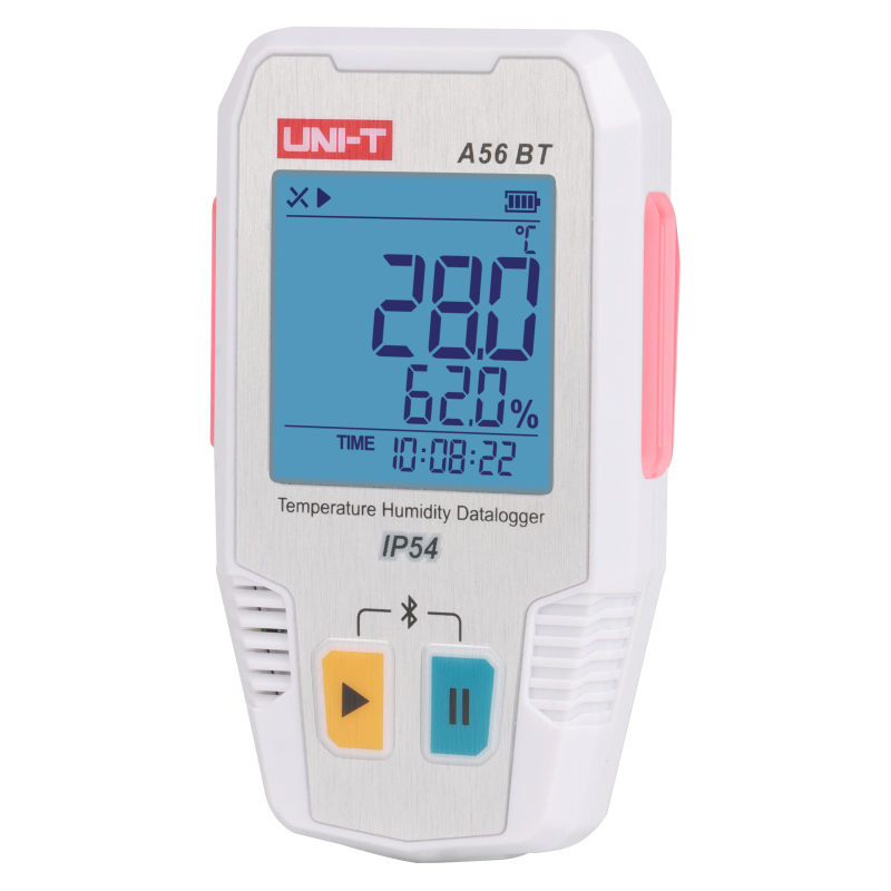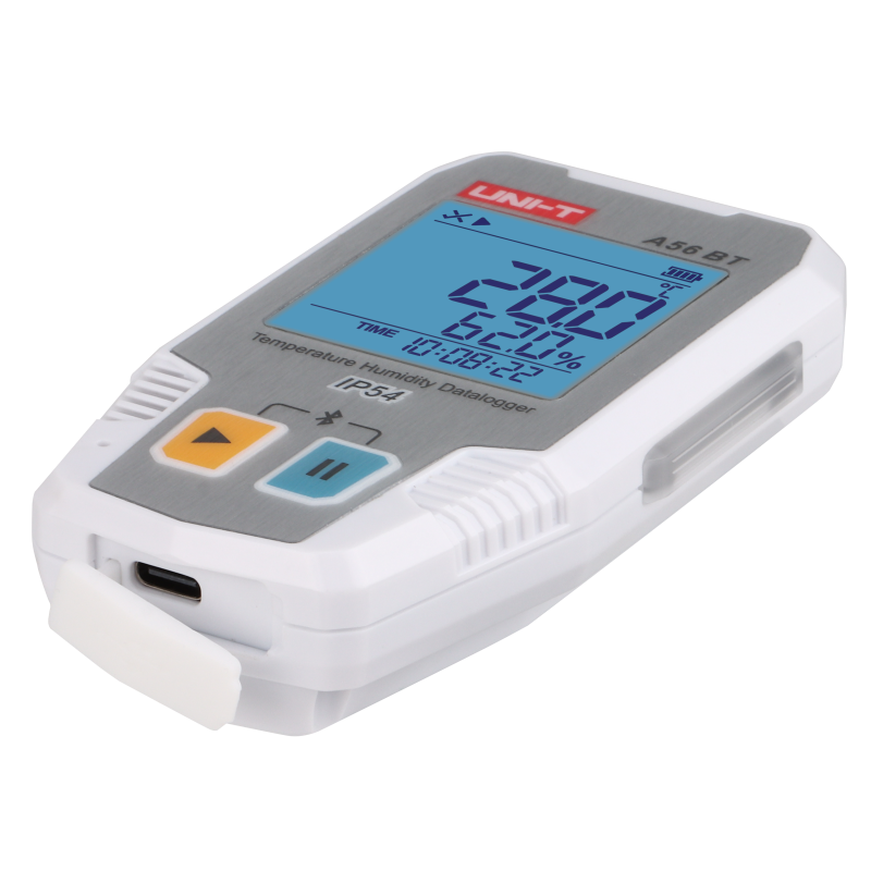 A56BT Bluetooth Temperature Humidity Datalogger is using high-accuracy digital temperature humidity module as the sensor, and with low-power microprocessor. It features high accuracy, large storage capacity, auto record, time display, LED sound-light alarm, ultra-low temperature record and etc. Meanwhile, it supports to modify records, view data and export PDF report via the mobile App or PC software. The datalogger can satisfy high-accuracy measurement and long-time temperature humidity record requirement in different conditions, widely used in the food processing, cold-chain transportation, storage and etc.