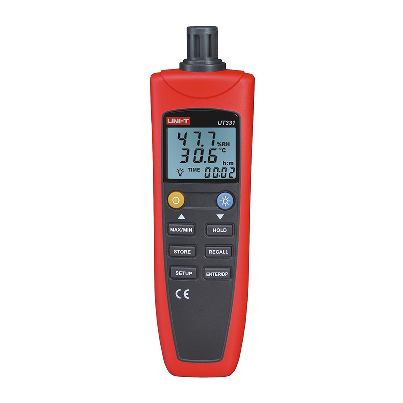 UT330 series meters measure temperature and humidity with low power consumption and high precision. The measured data can be saved and exported to PC software for further analysis.
