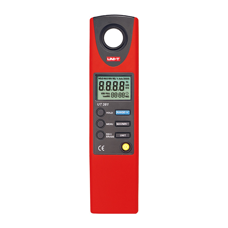 UT380 series light meters measure light intensity and display results in Lux or FC. It has a high sampling rate of 100/s. UT380 series’ low power consumption allows up to 200 hours of continuous operation. Results can be stored within the device and transfered to PC for further analysis, printing and storage.