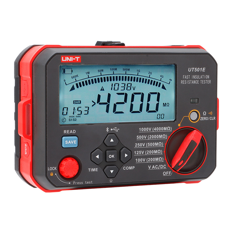 UT501E can verify the quality of the electrical equipment produced, confirm the change of the insulation of the electrical equipment over time, troubleshoot and determine the cause of the fault.